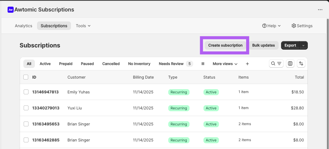 This guide will walk you through how to create a subscription manually from the Admin Awtomic app
