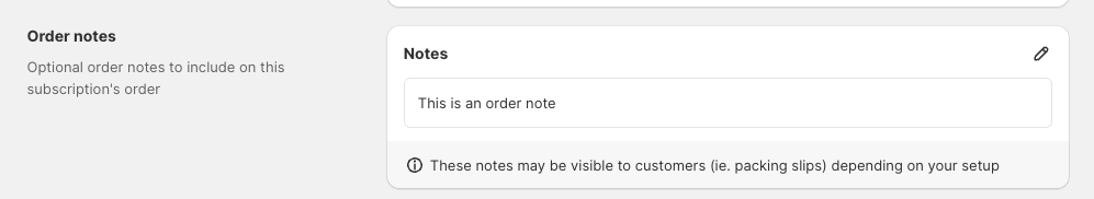 Order notes will be included on all recurring orders. They are generally not visible to customers unless your workflow exposes them on packing slips or similar materials.